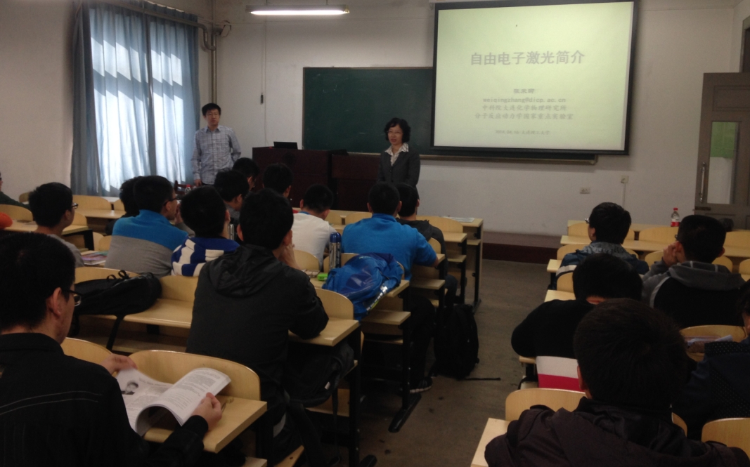 张未卿研究员则从自由电子激光角度为同学们进行讲解,对自由电子激光的产生机理、激光波长和脉冲结构等进行深入解析。