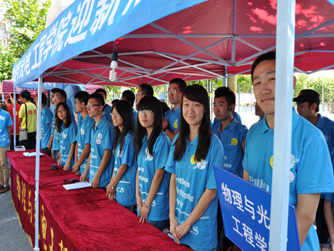 金秋送爽,丹桂飘香。刚刚送别夏日酷暑,物理与光电工程学院喜悦地迎来2013级本科新生。经过10余天的筹备与策划,以及8月31日、9月1日为时两天的辛苦与坚持,物理与光电工程学院2013年迎新工作进展顺利、收效较好。迎新日里,“物理蓝”成为西山生活区中醒目的亮色,为新生和家长留下深刻记忆。