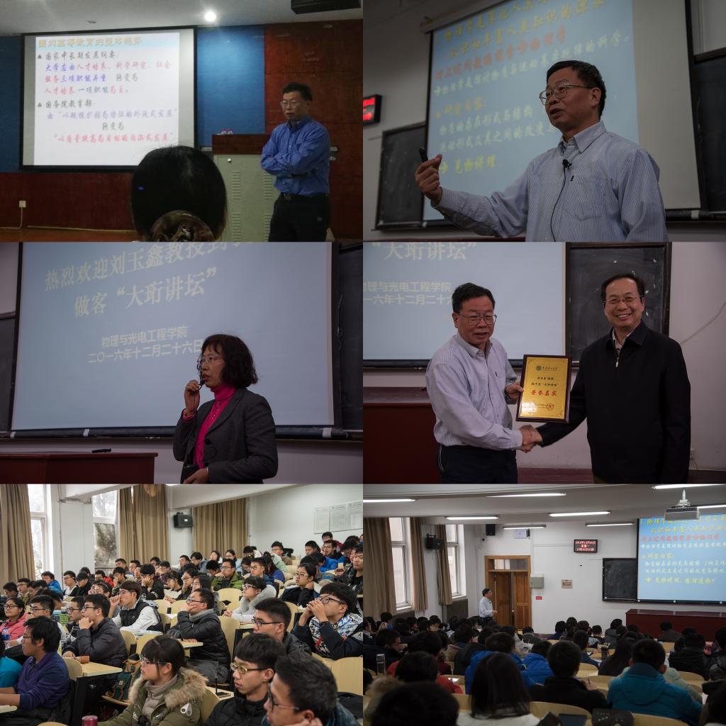 12月26日下午,刘玉鑫教授在机械馆251为新葡的京集团350vip8888首页低年级本科生做《物理学——不断推动人类社会文明进步的科学》科普导论讲座。讲座由学院主管教学副院长周玲教授主持,院长赵明山教授到场为刘玉鑫教授颁发“大珩讲坛”荣誉主讲纪念牌。在一个半小时的时间里,主讲人举例说明物理学是深化人类对自然界的认识和丰富人类知识的源泉,是几乎所有现代技术的源泉,是自然科学和工程技术的基础和先导。本场讲座进一步深化了低年级学生对物理学的重要性的认识,拓宽了学生们的知识面,帮助学生进一步了解学术前沿现状和动态,激发同学们学习物理并投身物理学及相关研究的兴趣。此外,刘玉鑫教授结合北京大学物理学科关于人才培养的理念和实践,向学生们介绍了一些科学的学习方法和经验,引导学生根据自己的兴趣,更主动地、有效地、个性化地学习、成长和发展。