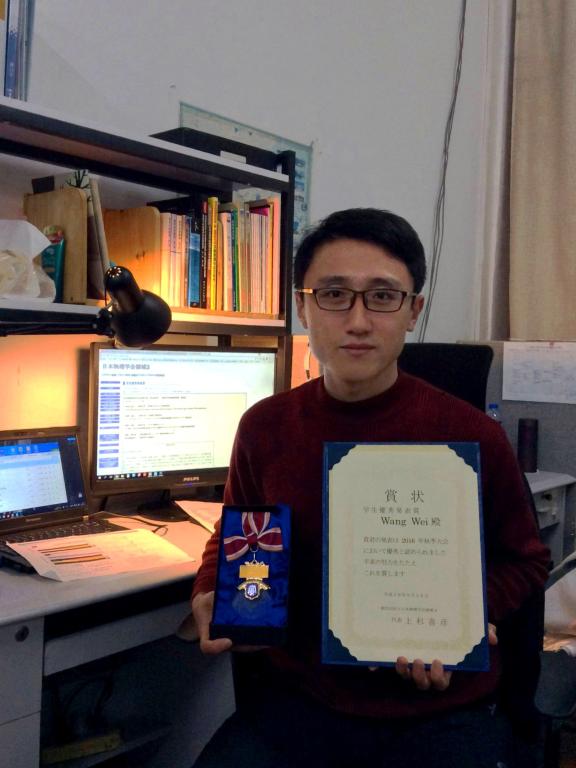 近日,在日本物理学会(JPS)2016年秋季大会中,我校新葡的京集团350vip8888首页等离子体专业博士生王玮获得了本年度日本物理学会优秀发表赏(奖)。日本物理学会创建于1877年,130年间共涌现出11位诺贝尔物理学奖获得者。优秀发表赏(奖)项旨在表彰于物理学各个领域取得突出进展的在读博士研究生,每个领域最终仅遴选出4人。本届大会共有超过5000名参加者,会议报告及展板总计3600余件。评奖过程首先由会议期间通过不记名投票对1000余场报告进行初选,并最终送于会议组委会通过讨论产生。王玮同学还被邀请参加了获奖后由日本物理学会主办的恳谈会(宴会活动)。本次王玮获奖是该奖项在近三年内唯一一次由中国人获得。