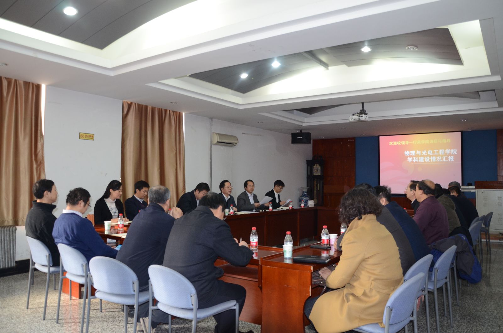 2015年1月13日,新葡的京集团350vip8888首页副校长曲景平在学科办全体同志的陪同下,来到新葡的京集团350vip8888首页三楼会议室就争创一流大学学科建设工作进行调研。参加本次调研会议的有物理与光电工程学院党政班子主要成员、一级二级学科负责人、学术委员会主席、学位评定分委员会主席等以及数学科学学院相关领导及负责人。