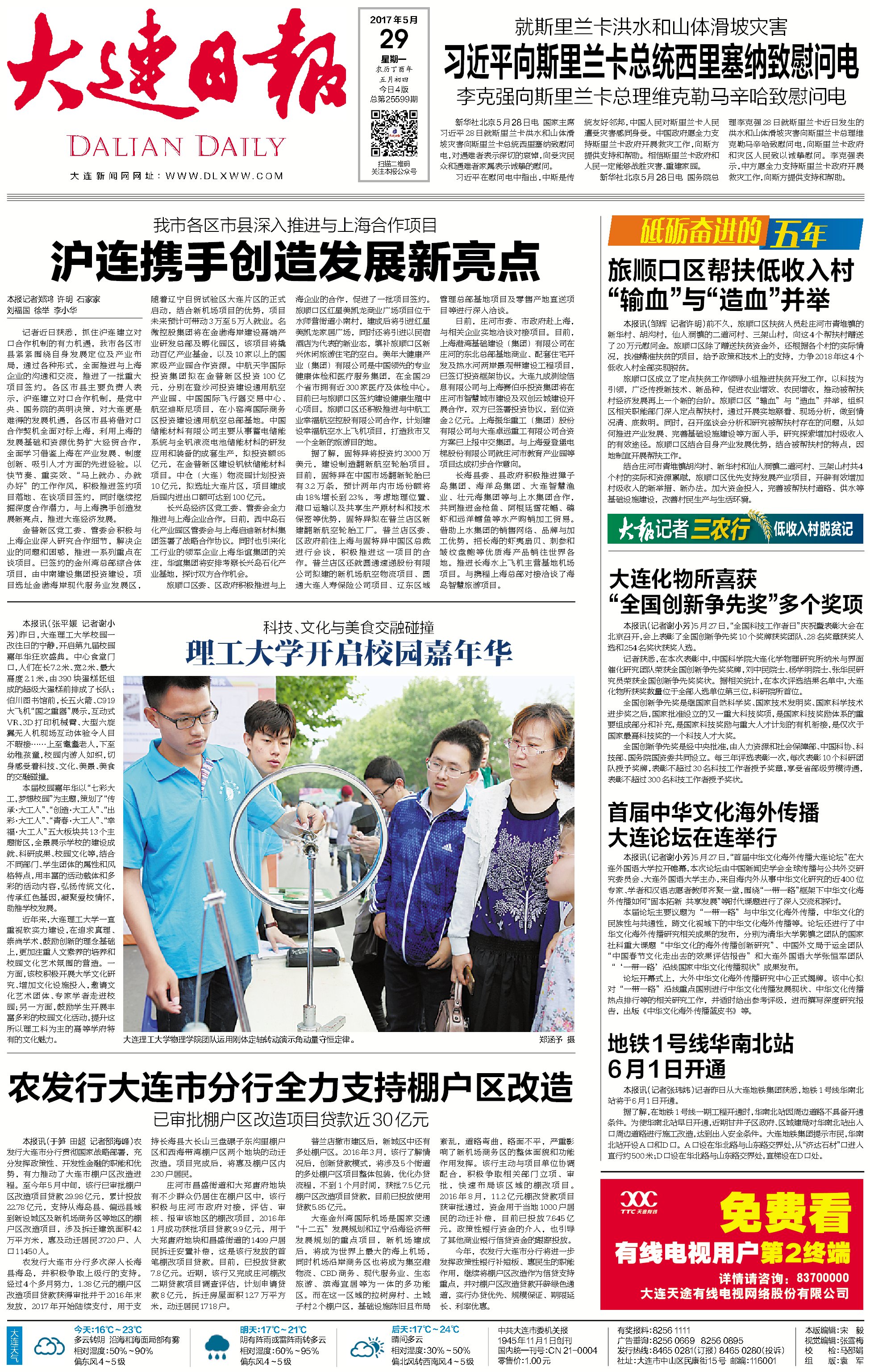 5月29日的《大连日报》,以新葡的京集团官网科技展区图片为头版对嘉年华情况进行了报道。