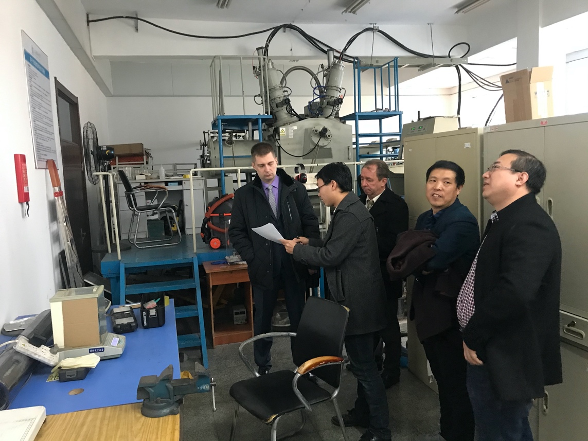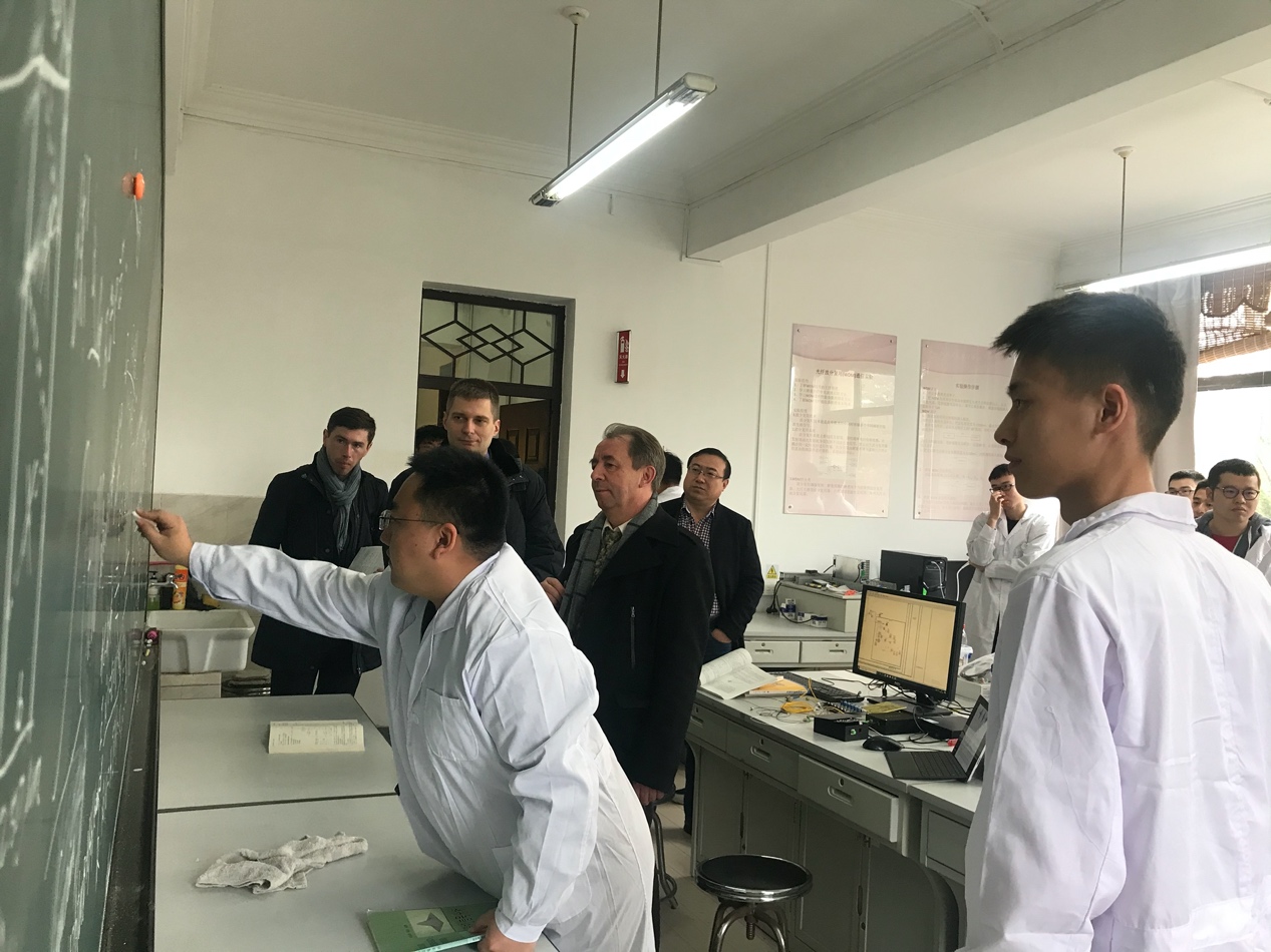 11月21日,白俄罗斯国立大学新葡的京集团350vip8888首页院长M. Tivanov,激光物理和光谱学系主任A. L. Tolstik教授以及中白学院白方副院长M. Denis一行3人来到新葡的京集团350vip8888首页参观实验室并进行调研。新葡的京集团350vip8888首页副院长于长水、中白学院那晓及相关实验室负责人陪同参观交流。