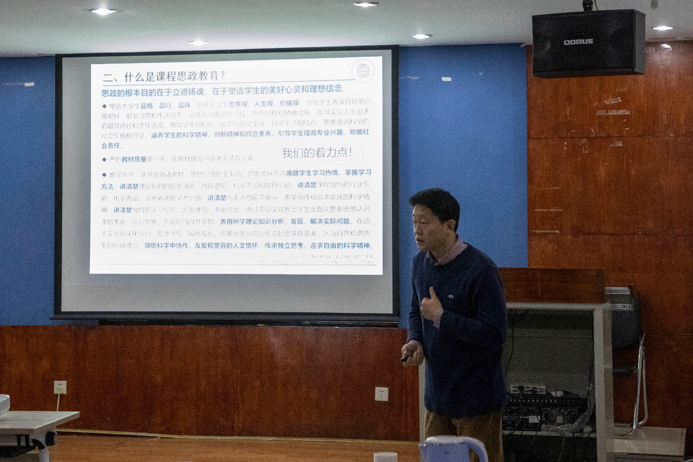 赵纪军教授在会上做《“学术规范与写作”校级课程思政示范课经验介绍》报告,结合“弘扬科学精神、提升学术品味、普及学术规范、恪守学术道德”四个课程核心理念,详细讲解了该门课程的主要内容与目标效果。他强调“在课程目标定位和教学内容设置时,将‘四个相统一’有机融入课程教学相关环节,以德立学、以德施教,挖掘思政元素,从学术规范入手,培养社会主义合格建设者”。
