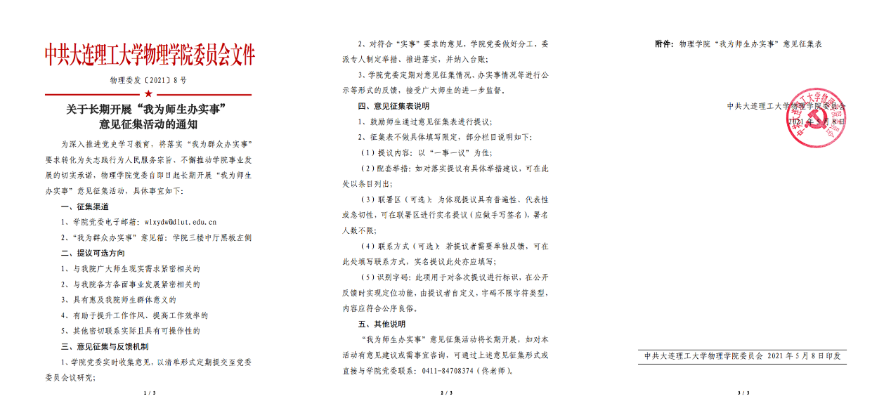 为深化党史学习教育成效,将落实“我为群众办实事”要求转化为矢志践行为人民服务宗旨、不懈推动学院事业发展的切实承诺,学院党委发布《关于长期开展“我为师生办实事”意见征集活动的通知》,将“为师生办实事”确定为学院党委的长线工作。