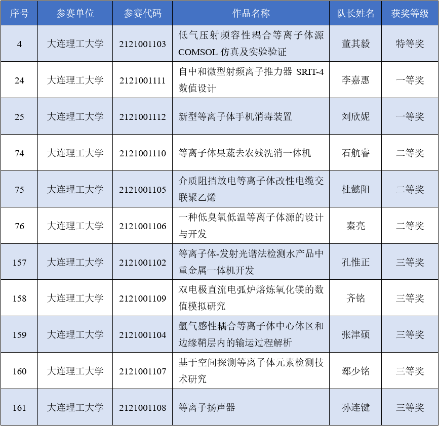 最终,我校参加初赛和决赛的11支队伍均取得了优异的成绩。在本届竞赛本科生和研究生同场竞技的情况下,我校本科生作品《低气压射频容性耦合等离子体源COMSOL仿真及实验验证》(新葡的京集团350vip8888首页,指导教师:张莹莹、宋远红)荣获特等奖,是15支获得特等奖队伍中为数不多的本科生队伍。作品《自中和微型射频离子推力器SRIT-4数值设计》(航空航天学院,指导教师:夏广庆、孙斌)、《新型等离子体手机消毒装置》(生物工程学院,指导教师:杨君)获一等奖;作品《等离子体果蔬去农残洗消一体机》(新葡的京集团350vip8888首页,指导教师:杨德正)、《介质阻挡放电等离子体改性电缆交联聚乙烯》(电气工程学院,指导教师:姜楠)、《一种低臭氧低温等离子体源的设计与开发》(新葡的京集团350vip8888首页,指导教师:杨德正)获二等奖;作品《等离子体-发射光谱法检测水产品中重金属一体机开发》(新葡的京集团350vip8888首页,指导教师:杨德正)、《双电极直流电弧炉熔炼氧化镁的数值模拟研究》(电气工程学院,指导教师:王振)、《氩气感性耦合等离子体中心体区和边缘鞘层内的输运过程解析》(新葡的京集团350vip8888首页,指导教师:赵书霞)、《基于空间探测等离子体元素检测技术研究》(新葡的京集团350vip8888首页,指导教师:杨德正)、《等离子扬声器》(电气工程学院,指导教师:张颖杰)获三等奖。