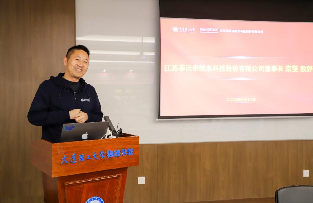 宗坚从菲沃泰的企业发展讲起,表示在公司创立之初就与我校建立了合作关系,效果优良,他希望能以实际行动关注人才培养、助力教育事业发展,更希望未来能够与我校在巩固现有成果的前提下,开展层次更丰富、覆盖更广的科技交流与合作,共同建设基础研究高水平支撑平台,携手并进,再创辉煌。