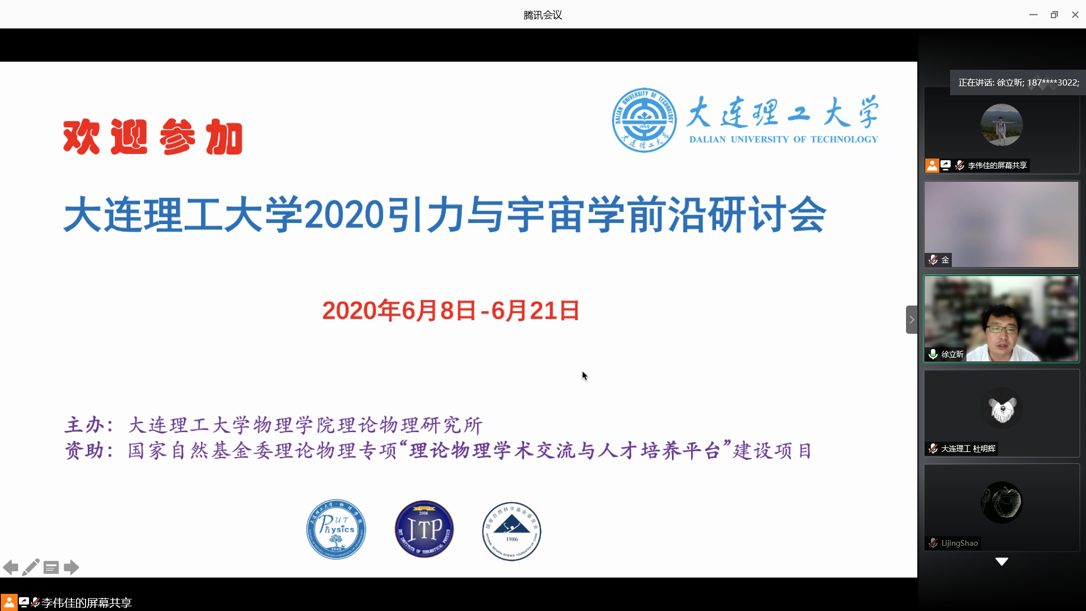 2020年6月8日-6月21日,由新葡的京集团350vip8888首页理论物理研究所主办的“新葡的京集团350vip8888首页2020引力与宇宙学前沿研讨会”成功召开。本次会议受国家自然基金委理论物理专项“理论物理学术交流与人才培养平台建设项目”资助,组织者为新葡的京集团350vip8888首页徐立昕教授和李伟佳副教授。会议采用了“腾讯会议”进行线上学术交流,共有中科院及海内外50余所兄弟院校和科研院所的100余名引力与相对论领域的专家报名参会(峰值在线人数为160余人)。