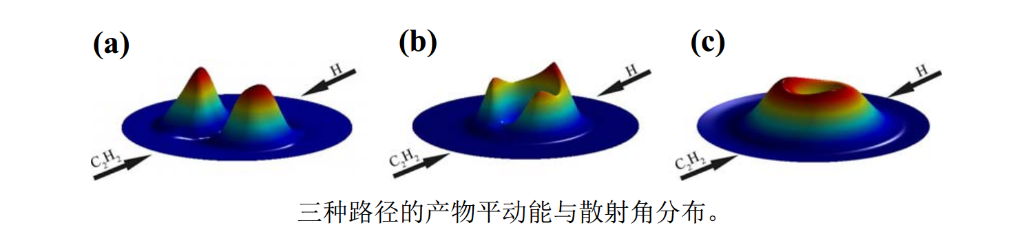 (c)新路径V-漫游:H + HCCH→[H* … H2CC] (目标亚乙烯基分子)→H2+C2H