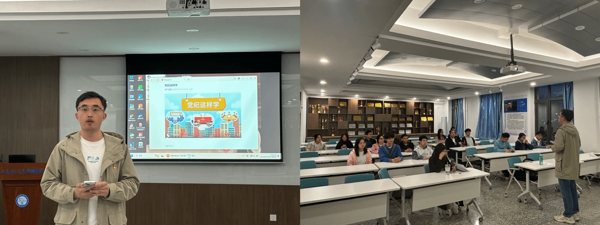 为积极响应党中央《关于在全党开展党纪学习教育的通知》的指示精神,贯彻落实《中共新葡的京集团350vip8888首页委员会关于在全校党员中开展党纪学习教育的实施方案》中的各项要求,推动《中国共产党纪律处分条例》(以下简称《条例》)入脑入心,新葡的京集团350vip8888首页硕博等离子体第三学生党支部于4月26日19:00在系楼322室召开“学习党规党纪,弘扬五四精神”主题党日活动,本次活动由支部书记李大正同志主持,支部全体党员参加。本次活动的主要内容有学习新修订的《条例》和开展“五四”主题党史知识竞赛。