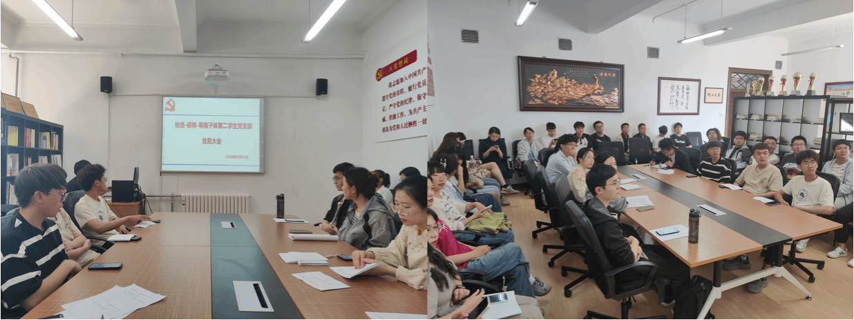为进一步加强基层组织建设,加强支部全体党员的党性修养,全面落实党纪学习教育任务要求,新葡的京集团350vip8888首页硕博等离子体第二学生党支部于2024年5月31日下午3点在物理系楼422室召开党员大会暨“学纪·知纪·明纪·守纪”主题党日活动,会议由党支部书记张宇同志主持,支部全体党员参加。