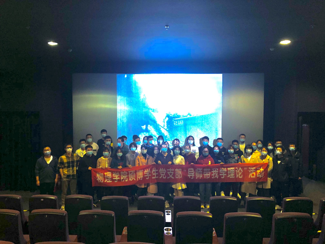在举国上下隆重纪念中国人民志愿军抗美援朝出国作战70周年之际,为落实上级党组织安排部署,教育党员更深入了解抗美援朝相关知识,营造学习伟大抗美援朝精神的浓厚氛围,培养党员的历史观和责任感,更好地向抗美援朝英雄模范和战士致敬,新葡的京集团350vip8888首页硕博原子与生物学生党支部联合硕博理论物理学生党支部、硕博光学学生党支部结合“导师带我学理论”的契机,于2020年10月27日组织支部党员和发展对象走进电影院观看电影《金刚川》,并邀请了原子与分子物理专业研究生导师韩永昌教授和柴硕副教授来参加指导此次活动。