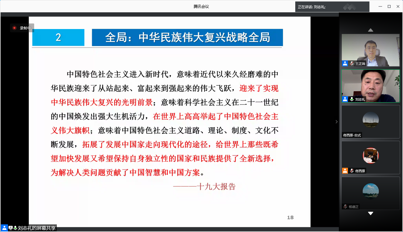 11月27日,新葡的京集团350vip8888首页党委邀请我校马克思主义学院副院长刘志礼教授,为学院师生党员、发展对象、积极分子宣讲党的十九届五中全会精神。讲座通过腾讯会议平台在线召开,学院党委书记王正汹主持会议,200余人上线学习。