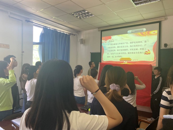 大会对高寅露、王燕遐、于雪克、胡钦,4名同志转为预备党员依次进行了讨论和表决。首先,全体起立奏唱国际歌。由发展对象宣读入党志愿书,说明了对党的认识,自身的政治信仰,入党动机,以及自身存在的优缺点,表明了对待入党的态度和决心。随后,发展对象的两名入党介绍人分别介绍了发展对象的主要情况,并对其能否入党表明意见。由支部副书记高日霞同志代表支委会向大会报告了发展对象的政治审查情况、征求党员和群众意见的情况。在与会党员进行充分讨论的基础上,由有表决权的党员进行无记名投票表决。按照逐个讨论、逐个表决的原则,逐一进行讨论,表决,以及宣布投票结果,由高日霞同志宣读《关于接受高寅露等4名同志接收为中共预备党员的决议(草案)》。最后,支部全体党员同预备党员一起,面向党旗,进行庄严宣誓。