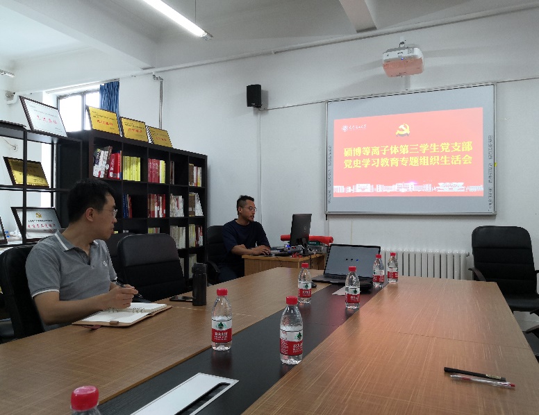 为深入学习贯彻落实习近平总书记在庆祝中国共产党成立100周年大会上的重要讲话精神,巩固党史学习教育在全体支部党员的学习效果。7月20日上午,新葡的京集团350vip8888首页硕博等离子体第三学生党支部党史学习教育专题组织生活会顺利召开。