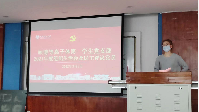 首先,总结了2021年党支部在党建工作和支部活动方面完成工作情况:一、组织机构完善,至2022年3月,硕博等离子体第一学生党支部共有学生党员39人,占总人数的70.18%。党支部书记崔紫宵同志、组织委员张泽汇同志、宣传委员荆煜同志团结协作,工作有声有色。二、党员发展工作完善,支部发展党员工作本着“坚持标准、保证质量、慎重发展”的态度,以公平、公正、公开、竞争、择优的原则,通过支部大会讨论、民主投票、报上级党组织审查,择优确定多名入党积极分子,发展多名预备党员。三、广泛开展党史学习教育专题活动,按月持续开展“红色故事大家讲”党史学习教育交流会,前往红色教育基地进行参观学习,积极参加“学党史、强信念、跟党走”微党课大赛和“四史”竞答线上答题等活动,在党日活动中学党史、悟思想,筑牢了思想根基。四、组织学生党员扎实开展“我为群众办实事”实践活动,参加21级迎新志愿活动、疫情封校期间协助核酸检测和打扫三束实验室的志愿服务等活动,发挥了党员的先锋模范作用。