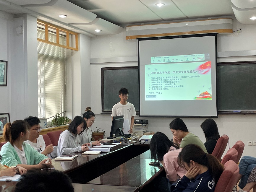 为加强党员队伍建设,积极推进党员发展工作,健全完善机制,发挥党支部的战斗堡垒作用。按照学院党委统一部署并报党委批准,经硕博等离子体第一学生党支部支委会研究,新葡的京集团350vip8888首页硕博等离子体第一学生党支部于2023年6月12日在三束一号楼205室召开党员大会。大会主要内容包括讨论刘世明同志和李龙飞同志的入党过会以及支部委员述职,会议由党支部书记崔紫宵主持,支部全体党员均到会参与。