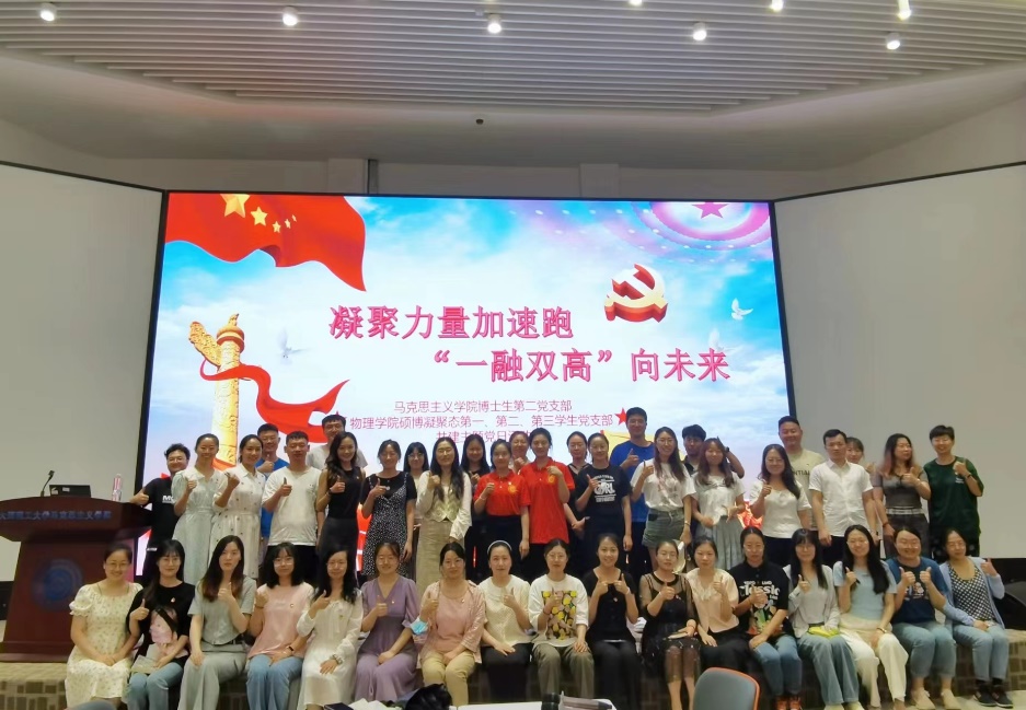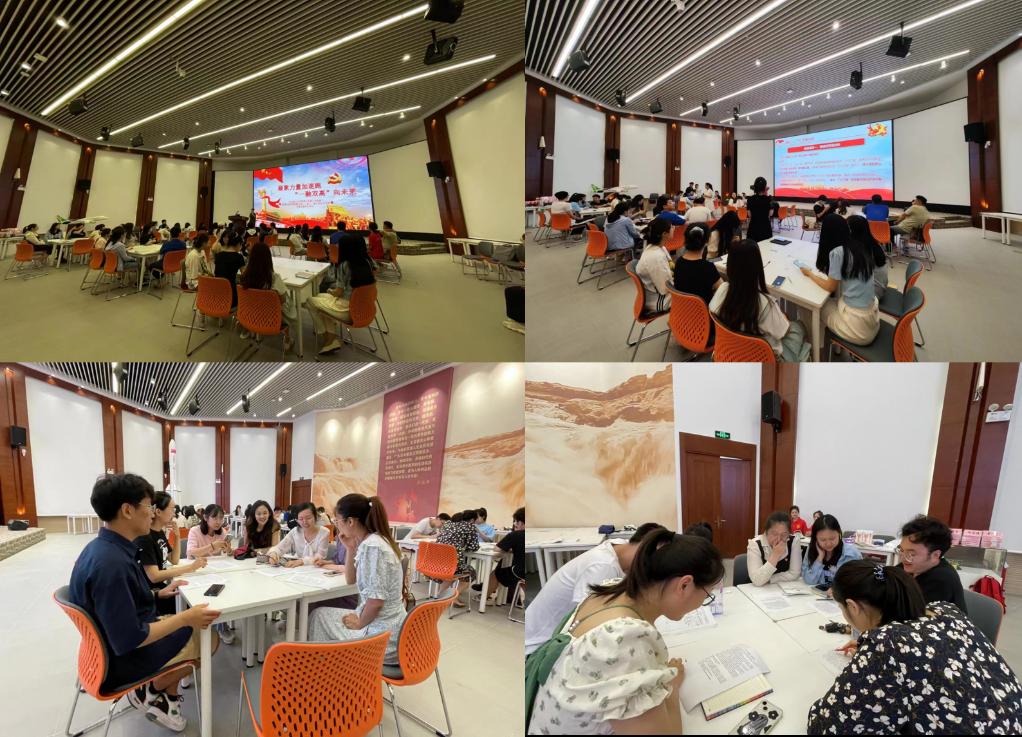 为热烈庆祝中国共产党成立102周年,深入推进学习贯彻习近平新时代中国特色社会主义思想主题教育,扎实推动学校“一融双高”建设,6月28日上午,新葡的京集团350vip8888首页硕博凝聚态第一、第二、第三学生党支部联合马克思主义学院博士生第二党支部于马克思主义学院情景教室开展以“凝聚力量加速跑 一融双高向未来”为主题的党日活动。