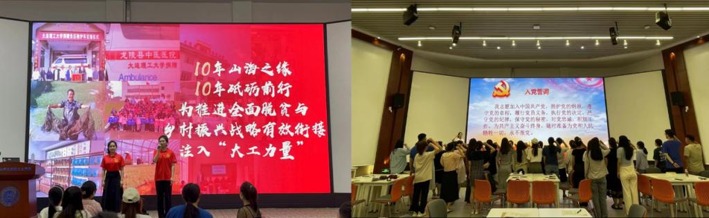 接下来,活动邀请到全校微党课大赛中获得第二名好成绩的马克思主义学院王犇同志和王文韬同志进行题为《山海缘未了,连理情更深——从脱贫攻坚走向全面乡村振兴》的微党课分享。两位党员激情澎湃的讲述了“十年山海之缘,十年砥砺前行”“民族要复兴,乡村必振兴”“乡村振兴,关键在人才,希望在青年”等内容获得与会党员一次又一次的掌声,激起各位同志的学习热情,大家纷纷表示,一批又一批大工人以久久为功的定力续写着一段又一段的连理之情,我们作为新时代的大工学子,也要以新葡的京集团350vip8888首页驻村书记和脱贫攻坚模范为榜样,牢记党的教诲,立志民族复兴,不负韶华、不负时代、不负人民,为推进全面脱贫与乡村振兴战略有效衔接注入强劲的“大工力量”。活动最后,全体与会党员面向党旗重温入党誓词。