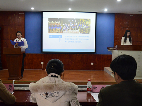 首先进行的是优秀集体标兵的评选,学院啦啦操队第一个上台展示。队长徐鹤轩同学分别从团队历史,团队精神,团队制度,团队风采,团队未来发展五个方面全方位地向评委介绍了啦啦操队的详细情况,并回答了评委的提问。之后,学院健美操队,28舍223寝室等上台做优秀集体标兵展示,牟安琪、杨发枝等上台做优秀个人标兵答辩,并逐一回答评委提问。