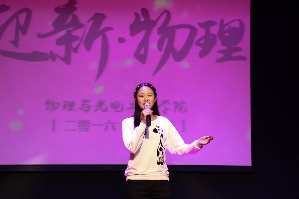 “少年智则国智,少年强则国强”,激昂的《少年中国说》表达了莘莘学子对祖国深深的热爱和立志做有为青年的决心。而《稳稳的幸福》则展现了新生们对大学生活最美好的憧憬和向往。悠扬的乐器声余音绕梁,新生与家长的采访视频则使许多同学热泪盈眶。每一个节目都经过了精心的准备和认真的排练,台上的每一幕都饱含着每一位演员和工作人员辛勤的汗水。这些节目充分向学院领导展现了物理学子多才多艺、自信昂扬的风采。激起在座同学们的阵阵掌声,鼓掌经久不息。