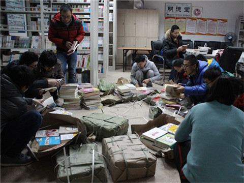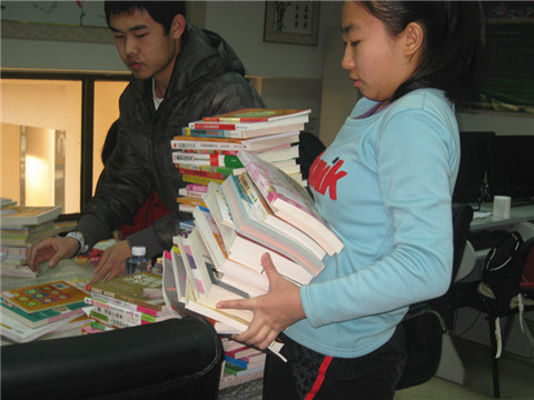 虽然书籍数目很多且种类繁杂,整理起来有一定困难,但是志愿者们却无丝毫抱怨,井井有条地做着每一件事,细心整理,埋头苦干,有序地分工协作,将书籍尽数分类整理出来,并分门别类地放置。接下来,志愿者们又将每本书都贴上标签,并写好索书号。一切准备工作完成后,他们又将书籍整齐地摆放在书架上,圆满完成了本次志愿活动。整个过程秩序井然,完成得十分迅速。