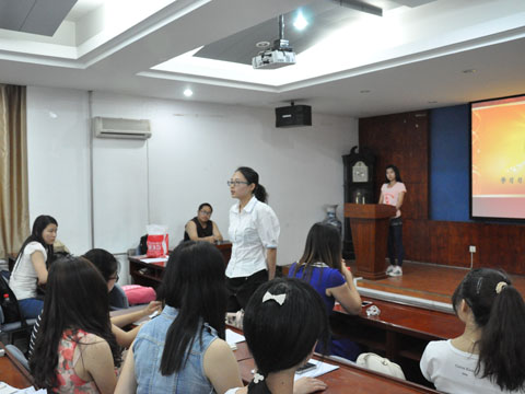 接着刘玉雪同学对找工作的问题作了相关介绍,她介绍了自身的经历。根据自己的性格和需要选择了自己喜欢并适合的工作。她分析了理工科女生找工作的不便条件,并讲述了自己事先规划对于找工作成功的重要性。同时提醒学弟学妹们提前做实习会为找工作提供一定的便利,劝诫学弟学妹们一定要事先规划好自己的人生。