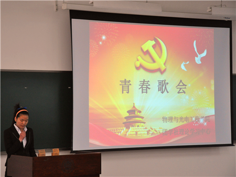5月5日上午,由物理与光电工程学院团委理论学习中心举办的第八届青春歌会于西部综合楼B501教室顺利举办。来自新葡的京集团350vip8888首页13级的6个支部的同学们轮流上场,进行了一番激烈角逐。出席本次比赛的嘉宾有物理与光电工程学院学生会主席刘聪越、办公室主任张紫薇、文化部部长魏鹏、团委组织部部长崔佳琪、团委理论学习中心主任刘鑫怡、学生会新闻部部长弋开阳以及管理与经济学部文化部部长陈曦和外国语学院文化部部长许芷嘉。