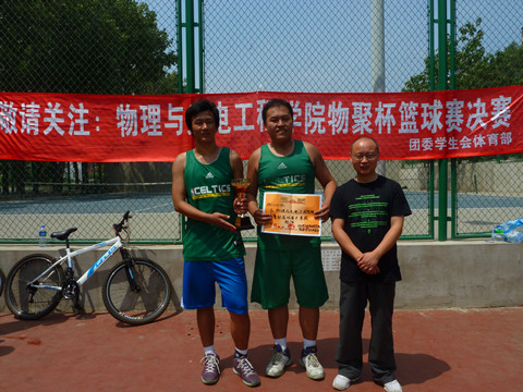 至此“物聚杯”篮球赛圆满结束,11级辅导员李一鸣老师,团委书记佟西原老师分别为冠亚军队伍颁奖。在“物聚杯”的比赛过程中,各年级的篮球队员们都付出巨大的努力,为班级增光添彩。他们不断拼搏的精神也是物理人探索精神的缩影。“物聚杯”的开展调动了同学们的热情,成功地引导同学们焕发出青春风貌,希望此类比赛能够继续开展下去。