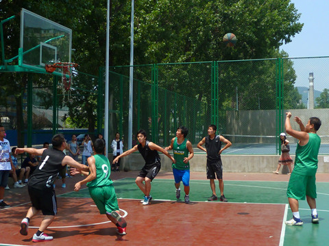 下半场,双方球员展开了更加激烈的角逐,进攻与防守中都展现出了他们高超的技术。场上的漂亮进球接连不断,场下的加油呐喊连绵不绝。球员们矫健的身姿与挥洒的汗水彰显着物理学子的青春与活力。双方旗鼓相当,比分非常接近,两队队长也不断鼓舞士气,制定战术。伴随着一声哨响,这场40分钟的较量终于落下帷幕,1104班以46:41的比分取得了胜利。