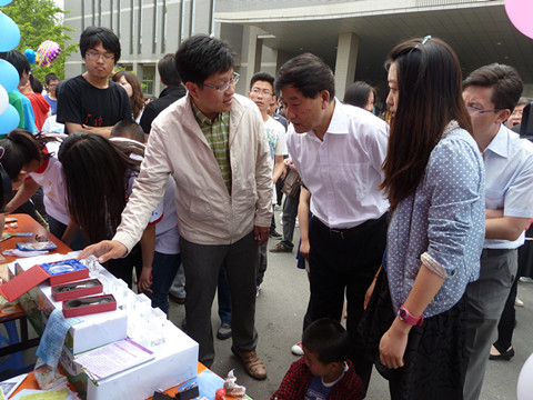 6月1日,新葡的京集团350vip8888首页第五届嘉年华隆重举行。校园内观者如潮,热闹非凡。在本次嘉年华中,物理与光电工程学院团委学生会成员在伯川图书馆门前展示饱含物理知识并充满趣味的实验。展出颇具魅力,观赏的人络绎不绝。上午,校党委书记张德祥等学校领导前来观看物理与光电工程学院的实验展示,给予了充分的肯定。