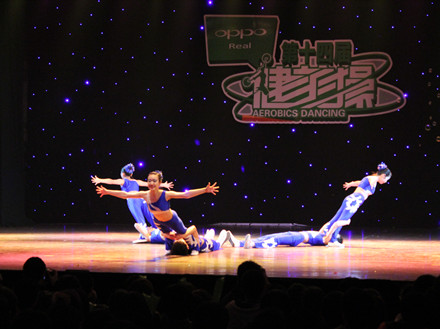 “炫物光年”代表队第14个登场,他们一出场便点燃了全场观众的激情,大家尽情的为其欢呼呐喊。六名参赛队员身着代表着物理精神的蓝色服装,用优美的动作,整齐的队形向同学们展现健美操的魅力。他们用灿烂的笑容,悦动的节奏向大家展示物理人的精神。短短3分钟的表演,却蕴含了多个高难度动作,不断抬高着观众们的热情。队员们精神饱满,努力拼搏,竭尽全力做到最好。随着音乐的停止,一个完美的结束动作呈现给了现场观众,赢得了同学们震耳欲聋的掌声。