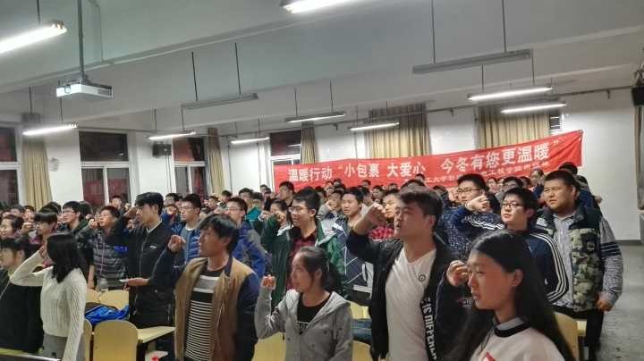 大会首先主持人发言引入主题,观看贫困山区孩子的视频,然后由外国语学院义工部部长曾婷为大家介绍爱心包裹的具体信息,让大一的同学了解爱心包裹这个公益活动,之后通过观看相关卡通人物介绍进一步对爱心包裹解释和宣传,紧接着物理与光电工程学院自强社社长赵瑀介绍爱心包裹的劝募的过程以及需要注意的事项和自己的一些劝募经验,告诉大一的新生敢劝,勇于去劝,在公益活动中提高自己的各种能力。这之后,又通过观看一段各地大学生的劝募视频来了解劝募的方法以及注意事项。最后,由赵瑀社长带领大家一起宣誓,全场声音洪亮,振奋人心。大会到此结束,取得了圆满成功。