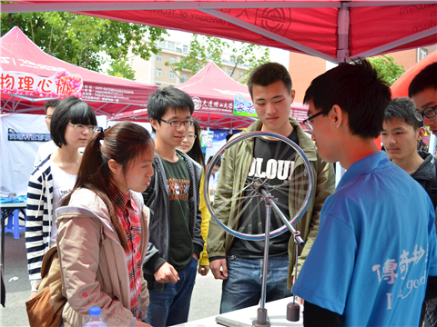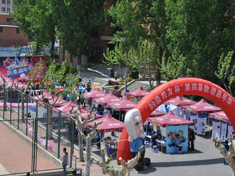 5月10日,伴着热情洋溢的音乐和明媚温暖的阳光,备受关注的“89级校友杯”第四届物理嘉年华之“大现场”活动在我西山生活区福佳体育场前广场顺利举办。物理与光电工程学院团委、学生会、社团联合会经过前期漫长的策划与筹备,为广大师生呈现了一场集科普性、文艺性、趣味性于一体的校园文化活动盛宴。持续全天的“大现场”活动吸引到大量在校师生及热心市民参与,校团委副书记王杨老师、新葡的京集团350vip8888首页党委副书记兼副院长杨木老师、大学物理实验教学中心伏静丹老师以及新葡的京集团350vip8888首页各辅导员老师莅临现场进行指导。