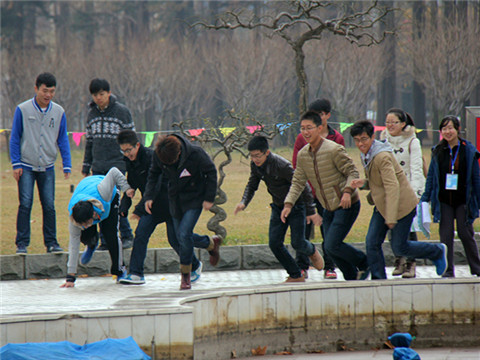 号称为史上最烧脑比赛的“三一训练营”从参赛者分组就开始为这微有细雨的广场升温,全体参赛的同学以边打招呼边猜拳的形式排成长龙,趣味感与温馨感,在“同学你好”这个环节里就已充盈了整个集体。在报数分组之后,由随队负责人带领各自的队伍,经历过自我介绍和贴铭牌,便开始准备迎接接下来各项团队竞争比赛的考验。首先来袭的“机智的盲人”比赛,虽形式简洁,却是给大家团队合作能力的大挑战。各队需要在全体蒙眼的情况下将一条被随机比例分配的长绳拼成正方形。在一阵或凌乱或井然,或紧张或欢快的沟通里,各个队伍都依次完成了任务,揭下眼罩的那一刻,他们满脸的笑容亦是团队一大步成长的见证。