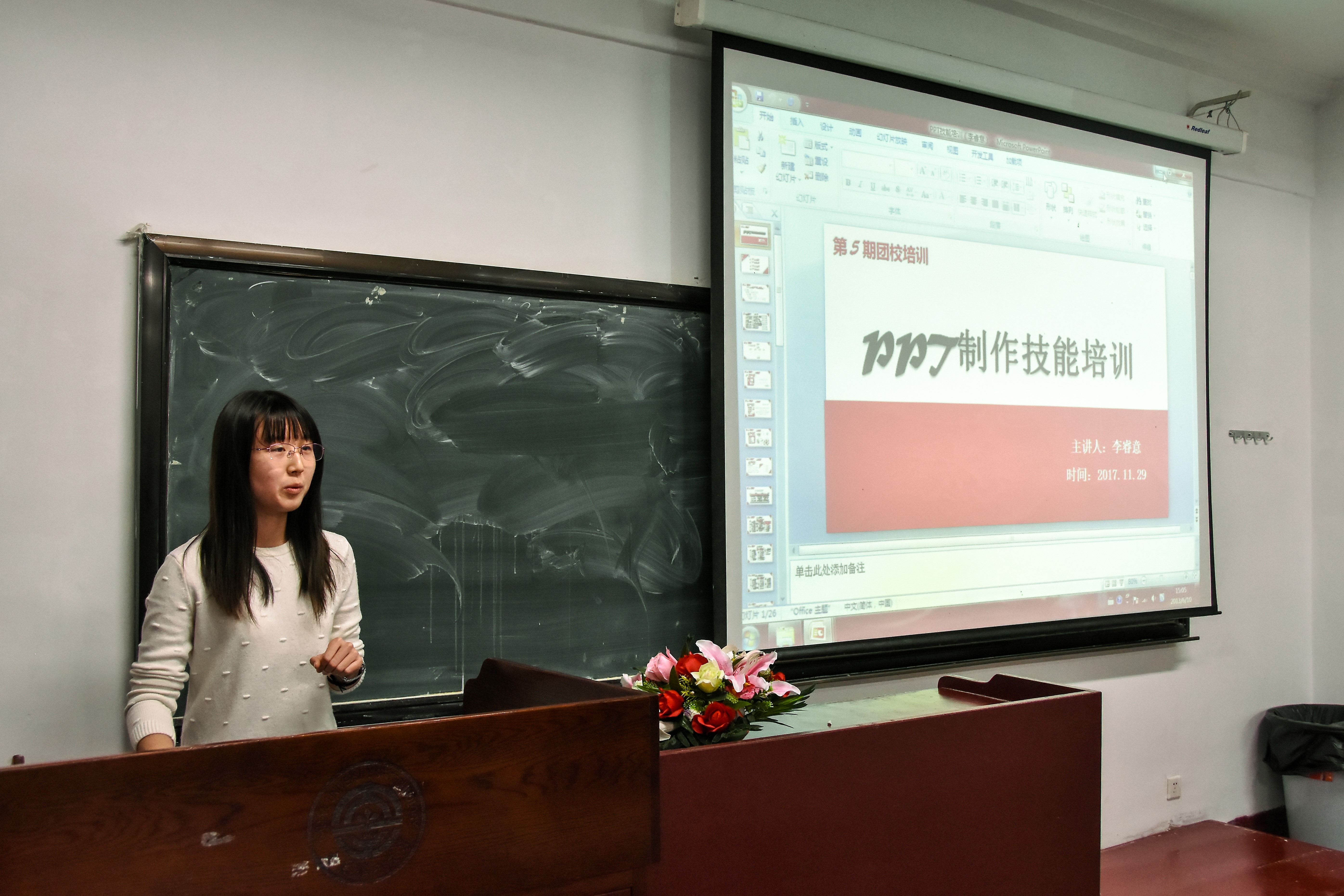 11月29日晚6:30,为满足同学们对PPT制作和公文写作技能的需求,近一步提高同学们的工作水平和服务同学的能力,新葡的京集团350vip8888首页于机械馆召开第五次团校,并对相关方面技能进行培训。出席本次团校培训的嘉宾有团委常务副书记李睿意,实践部部长罗英,以及实践部副部长刘璐。