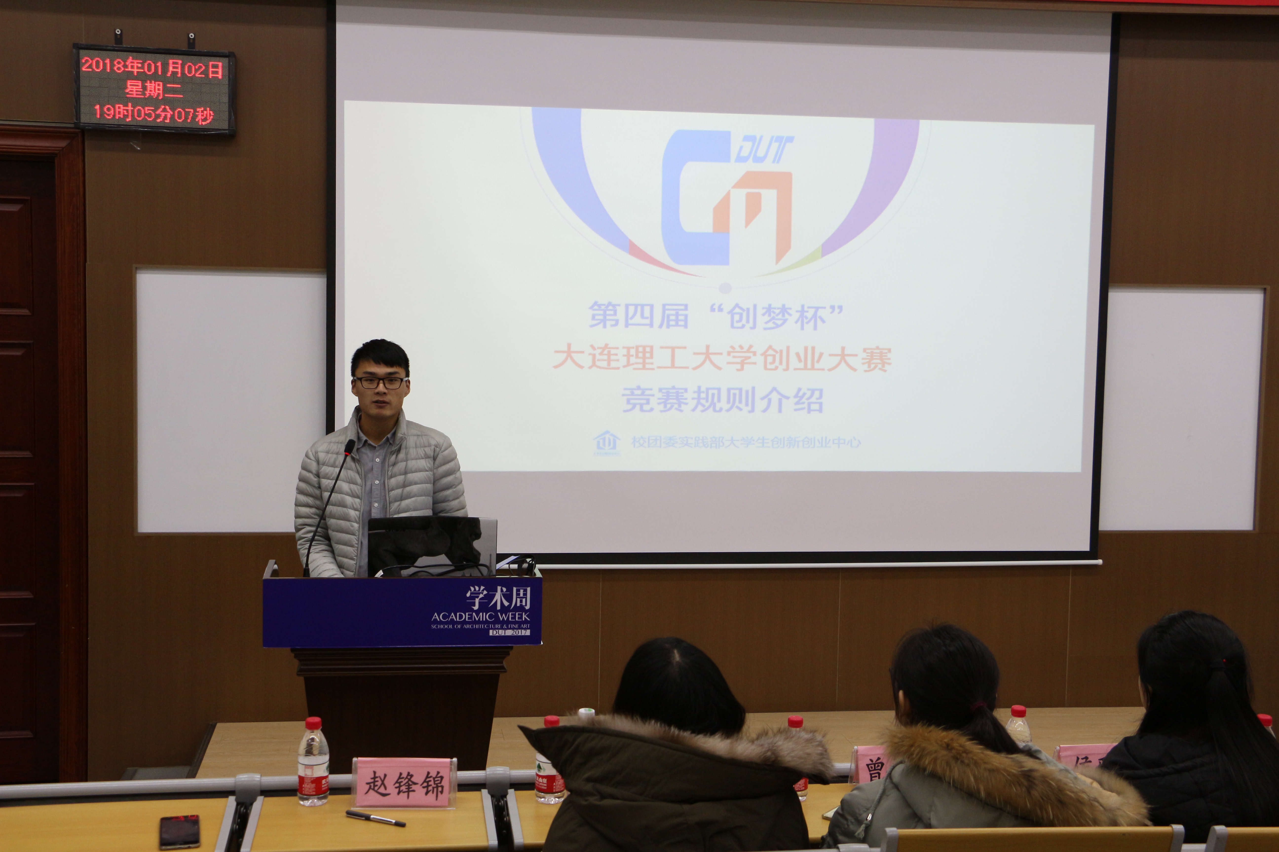 2018年1月2日晚6:30,由新葡的京集团350vip8888首页和建筑与艺术学院联合举办的创梦杯宣讲会在第二教学馆309室举行,出席本次活动的嘉宾有校团委实践部大学生创新创业中心副主任赵锋锦,新葡的京集团350vip8888首页科技实践部部长周滔,新葡的京集团350vip8888首页科技实践部副部长乔家鑫,以及来自建筑与艺术学院和建艺科创部的马骁尧、曾译莹、侯雅洁等。