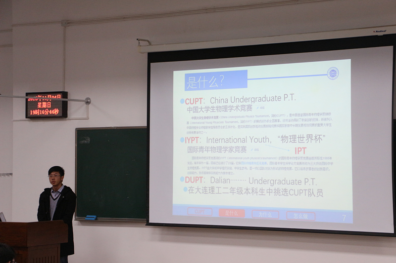 分享会上,周滔首先向大家介绍创梦杯创业大赛和攀登杯科技作品竞赛,并对比赛中的市场营销,市场调查环节进行深刻的解读,还分享同学们创业展示的一些实用的细节技巧。而何显龙分享了大学生物理学术竞赛过程中的点点滴滴,其中包括他的团队在实验室安营扎寨的有趣经历。在数模竞赛中表现突出谈阳阳向大家介绍了全国大学生数模竞赛,其中有对一些数学模型简单的介绍,他还向同学推荐许多数模竞赛需要的电脑软件,课外书籍,并举例介绍软件的使用,给同学们上一节生动的数模入门课。“天赋和努力都决定了你的上限”,在全国大学生物理实验竞赛创下佳绩的范本澍针对个人能力的提高和如何配合指导老师工作提出了自己的看法,鼓励大家勇于尝试,相信努力的意义。