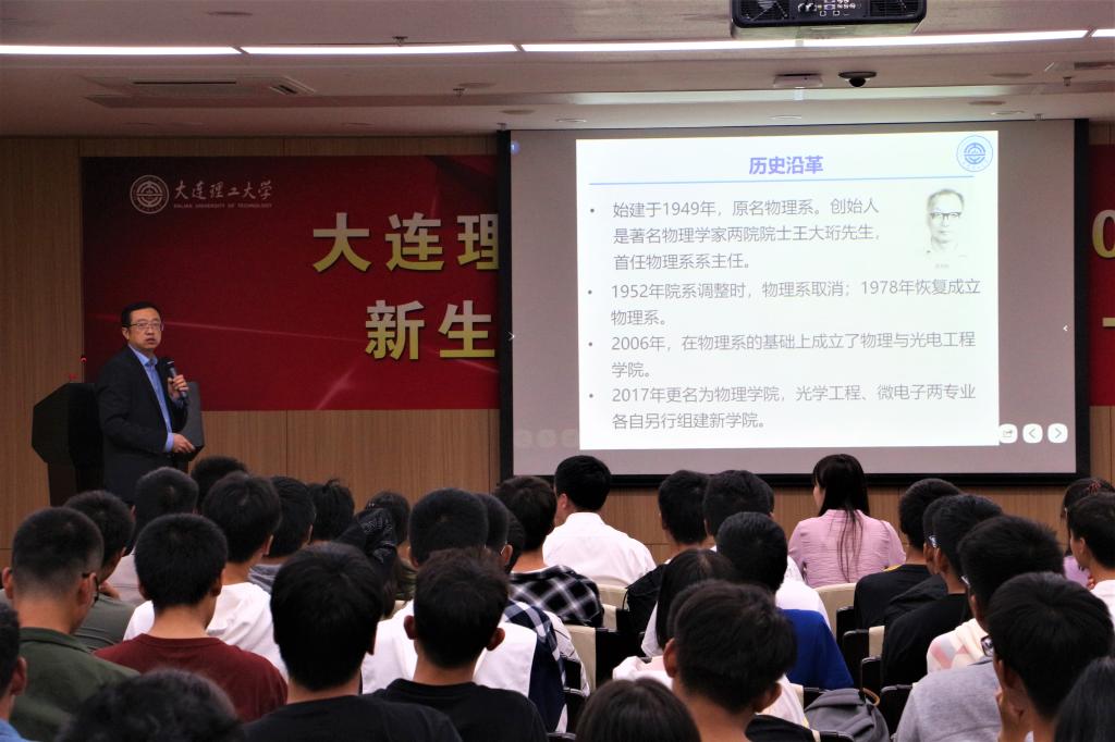 在小憩一会之后,赵纪军院长就开始进行院长第一课。赵纪军院长首先进行学院概括和专业简介,他回望过去,介绍新葡的京集团350vip8888首页的历史沿革,展示新葡的京集团350vip8888首页的教育成就,让同学们对学院有一个大致的认识。接着,他表达对新生同学们的期望与要求,从上大学的原因,作用和方式等角度,与同学们展开深入探讨,以一个31年老大学生的身份,勉励新生要脚踏实地。最后,赵院长与同学们分享曹则贤老师的话,让同学们更加了解物理之美。