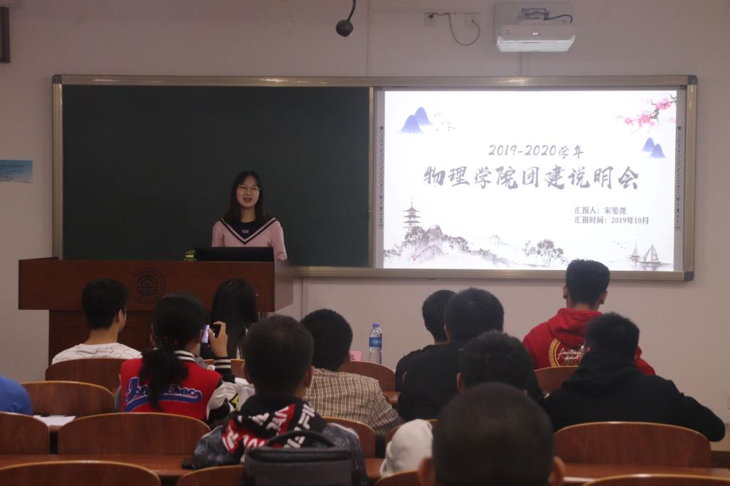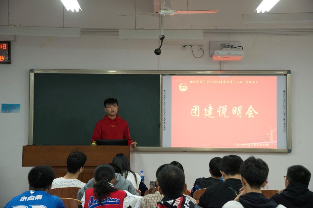 2019年10月20日,新葡的京集团350vip8888首页团建说明会在综合教学二号楼A306教室顺利举行。到场的嘉宾有学生会主席王栋梁、常务副主席宋玺尧、组织部部长温荣贤、实践部部长唐雯月。