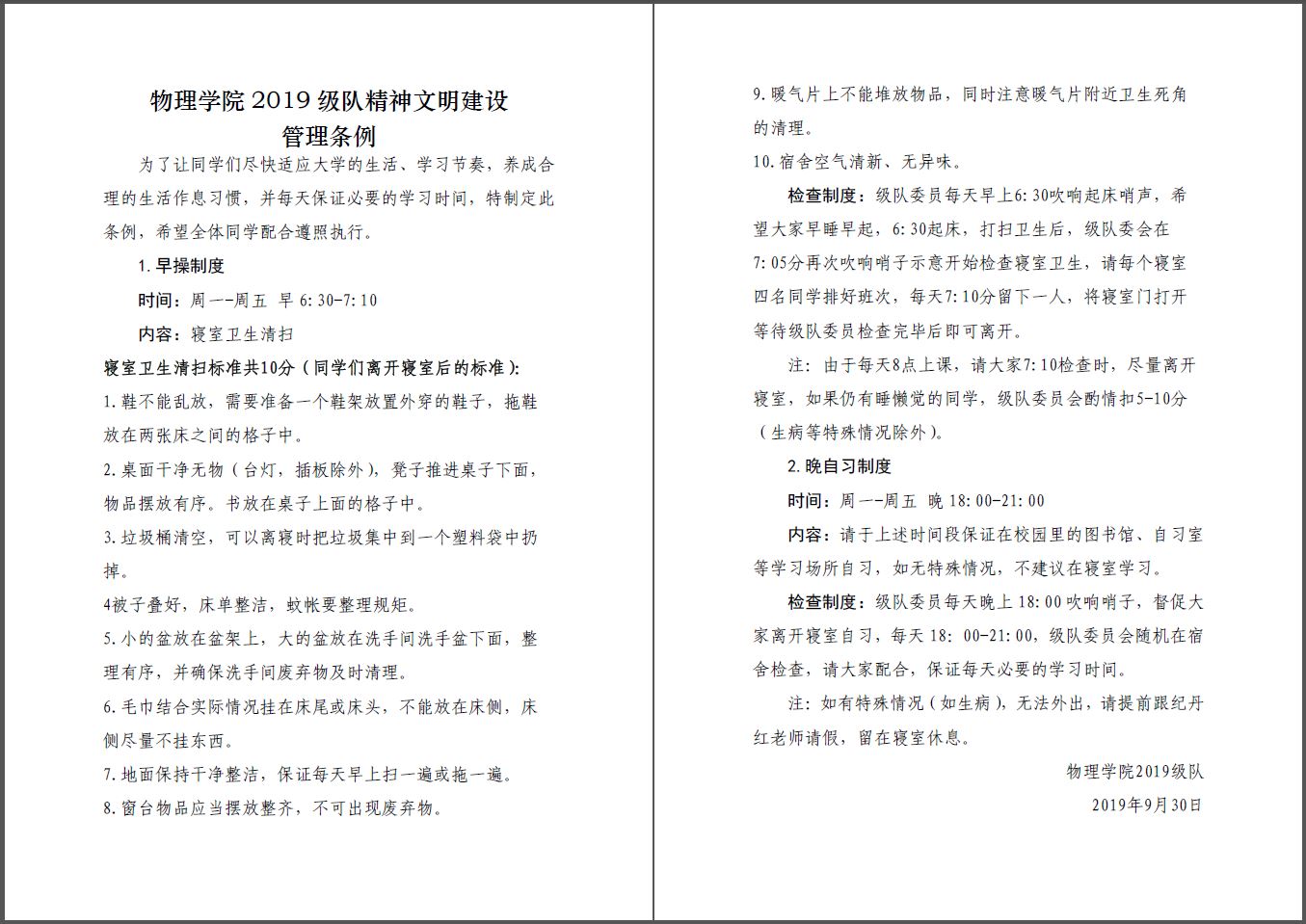 为落实新葡的京集团350vip8888首页安全教育活动月的号召,新葡的京集团350vip8888首页将传承性的精神文明建设制度继续发扬,结合安全教育的初衷,设计早操和晚自习制度,为更好地保证大一学生身心安全保驾护航。这是具体的制度条例。