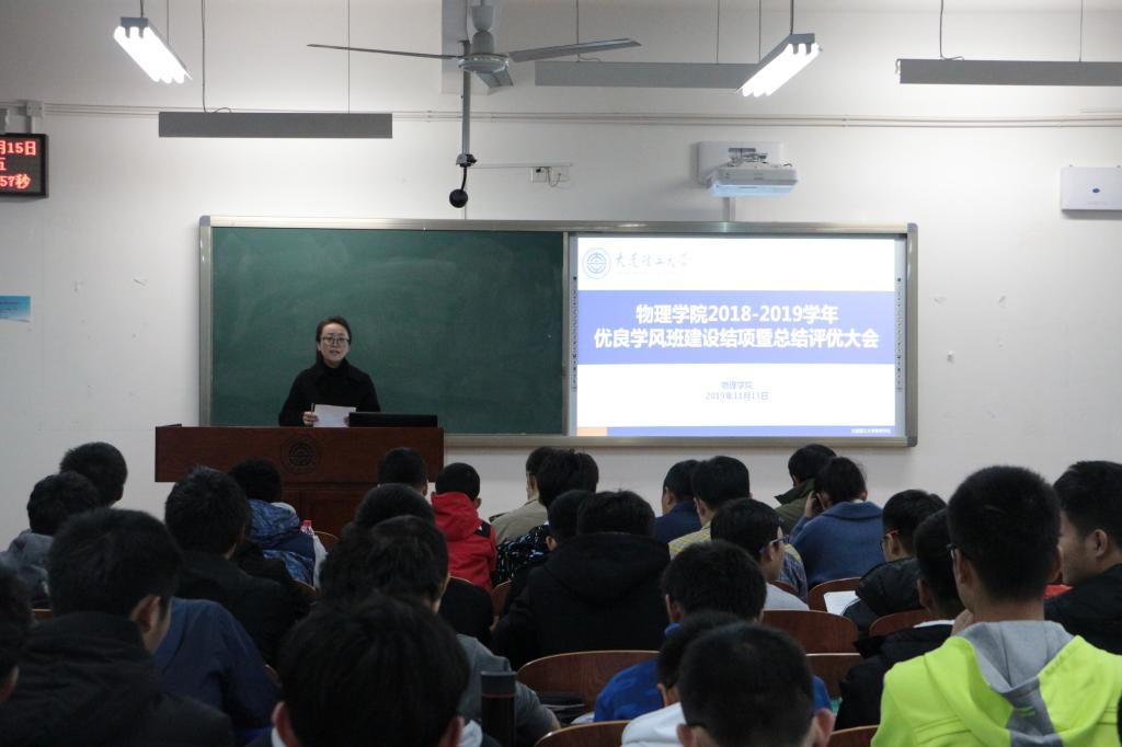 2019年11月15日晚8时,新葡的京集团350vip8888首页2018-2019学年优良学风班建设结项暨总结评优大会于综合教学二号楼A301教室召开。本次评审团由学院党委副书记兼副院长周福良、物理1603班班主任王成林副教授、应物1801班班主任荆振国副教授、物理1702班班主任王丰副教授、物大珩1901班班主任张钰如老师、2018级辅导员张胜男老师和辅导员工作助理唐健璐老师组成。