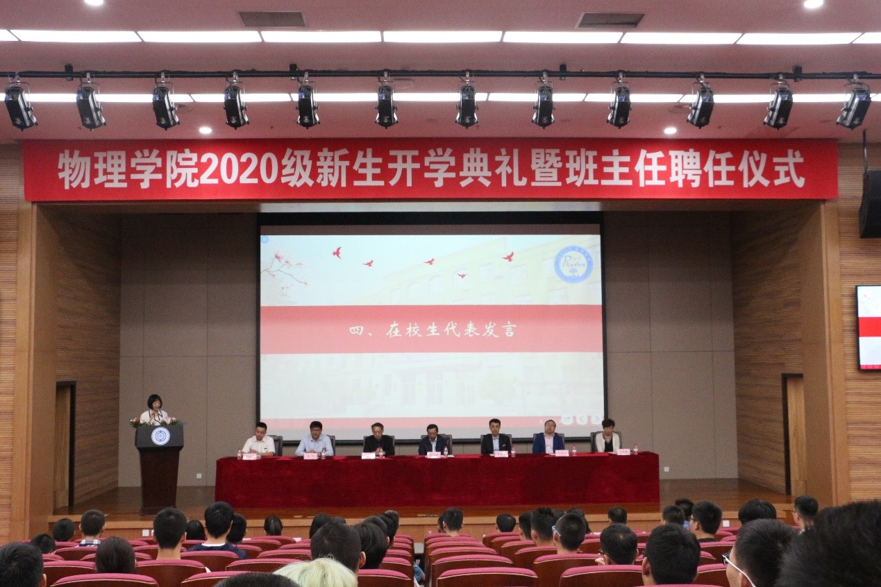 之后2019级博士生刘嘉言同学作为在校生代表进行讲话。她向同学们讲述自己从为大珩班忙碌的学业焦头烂额到保送到本校等离子体物理专业的成长经历,展示自己在困难和迷雾中不断前行,平凡中坚守的姿态。她祝愿学弟学妹们在遇到坎坷时总能昂首前行,悲伤绝望时总能重燃希望!