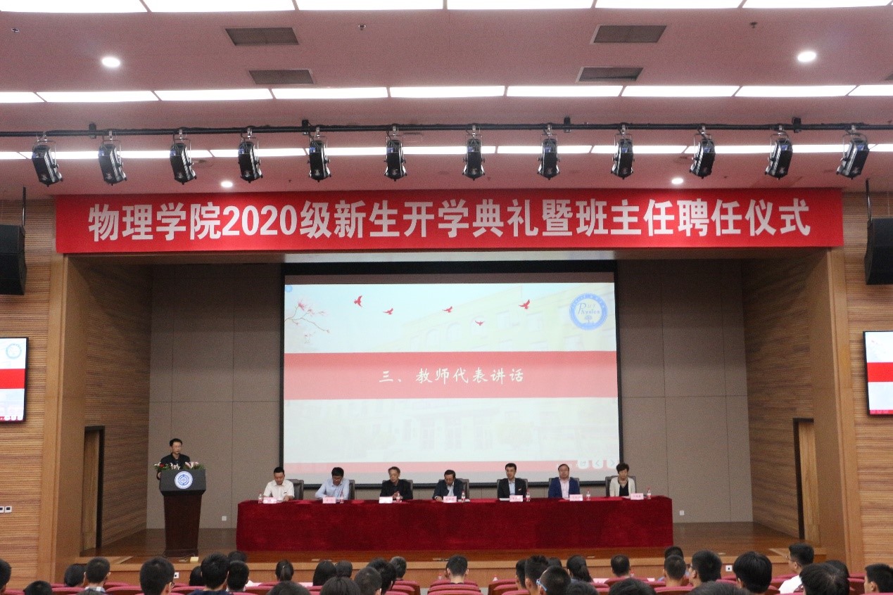 接下来,胡章虎副教授作为教师代表进行讲话。他以一个新葡的京集团350vip8888首页工作者和一个毕业十余年的老学长身份与新生们交流在大工学习生活中的心得体会。胡教授向同学们强调努力学习的重要性,激励同学们努力奋斗,以知识为食,征服物理的学海,以奋斗为翼,翱翔在真理的天空。
