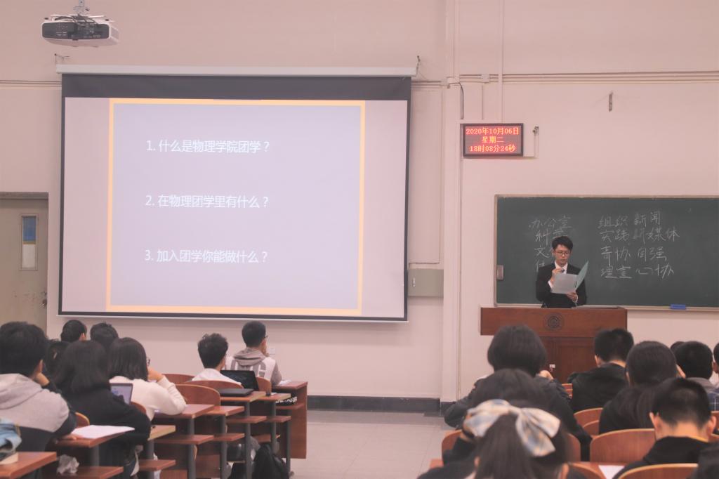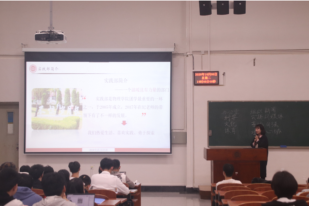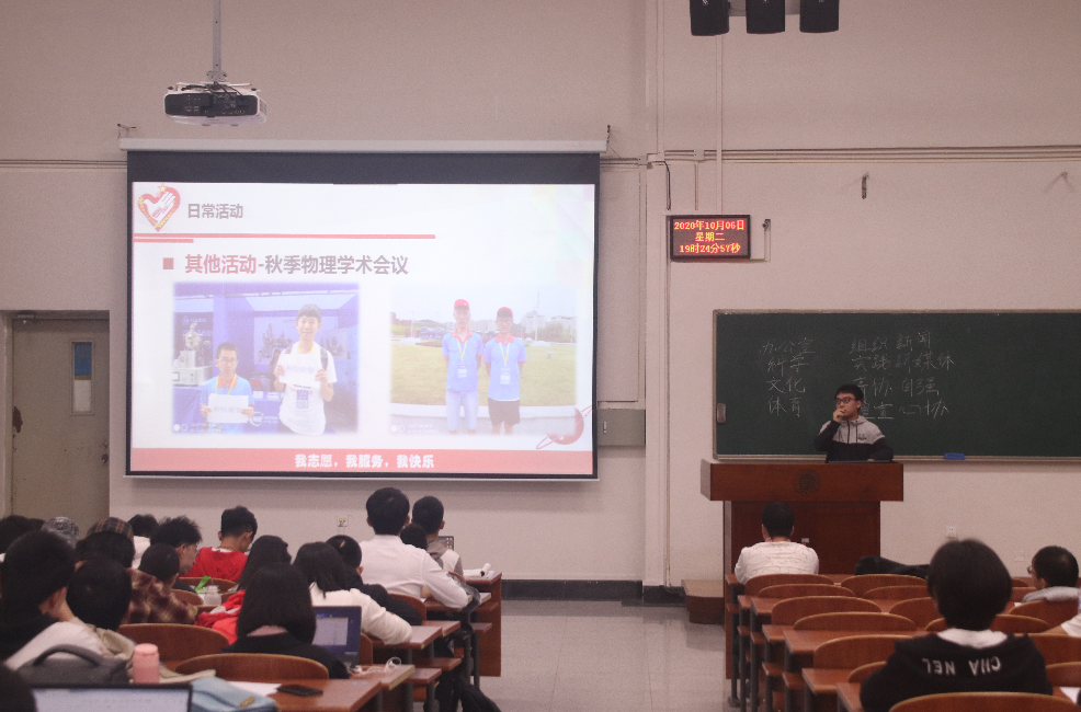 接下来,由各部门的部长介绍各部门的工作内容以及部门特色。从学生会到团委十二个部门依次进行介绍。在新葡的京集团350vip8888首页的领导下,新葡的京集团350vip8888首页团学社的各个部门分工合作,宣传并举办院内各种活动,共同致力于服务学生、学院建设。在招新宣讲会上,办公室新颖的ppt、体育部部长阳光开朗的开场白、以及实践部门的招新短视频等新颖有创意的招新方式引得全场热烈的掌声。在团学社部门招新宣讲完毕后,校青年协会、新葡的京集团350vip8888首页足球队,新葡的京集团350vip8888首页的辩论队向刚刚迈入大学的20级同学发出诚挚的邀请。