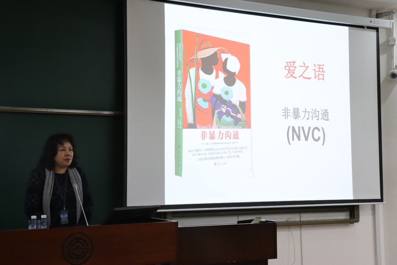 2020年11月18日下午14:00综合教学楼1号楼251,新葡的京集团350vip8888首页心理健康教育与咨询中心主任胡月教授,为新葡的京集团350vip8888首页20级学生开展主题为“‘爱之语’—非暴力沟通”的心理讲座。胡月老师在讲座开始从几个小笑话切入,与现场同学们沟通讨论日常交流语言的艺术。讲座中,胡月老师与现场同学互动,生动形象地展示人际中的三种相处关系。她向同学们阐述非暴力沟通,让同学们意识到人际交流中非暴力沟通的重要性,大学生活人与人之间更要用非暴力沟通来搭起稳固的桥梁。