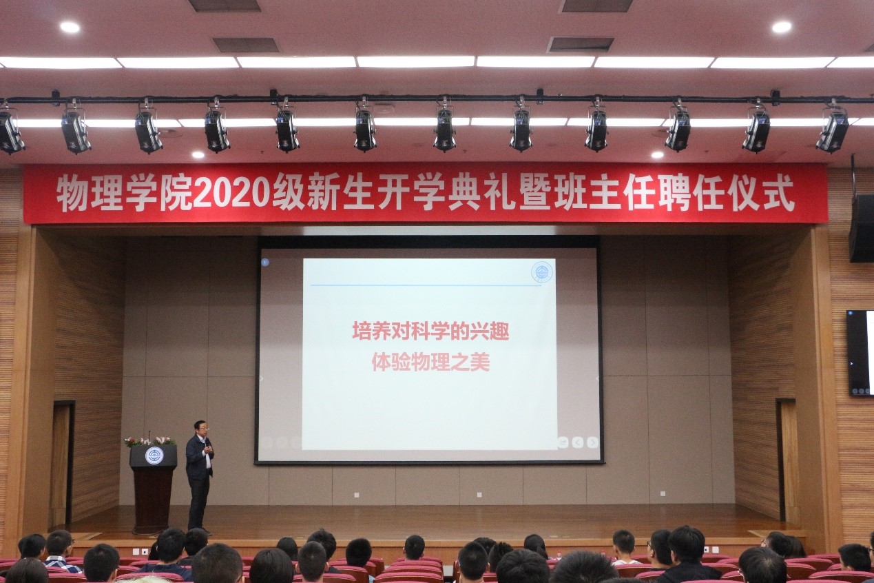 2020年9月30日下午15:00,新葡的京集团350vip8888首页院长赵纪军教授在伯川图书馆报告厅为新生讲授院长第一课。在讲座中,赵纪军院长首先向同学介绍新葡的京集团350vip8888首页基本概况和物理专业基本情况,从学院历史再到师资力量,赵院长都与同学们细细介绍。接着他对同学们提出期望和要求:“珍惜时光,全面发展,加强自控能力、培养高尚品格”,年轻人要朝气蓬勃,不忘初心,从点滴做起。在入学开始阶段赵纪军院长的谆谆教导就为新生指明未来发展的道路。