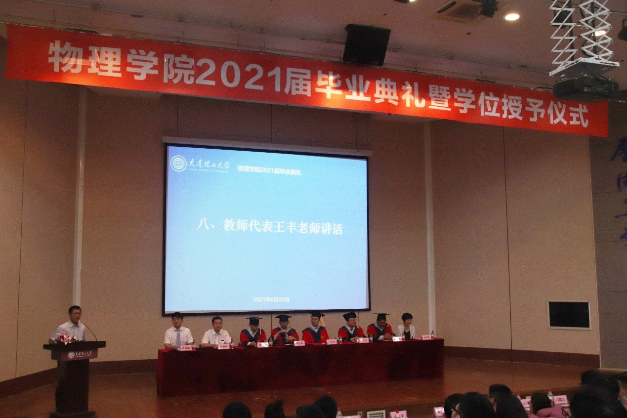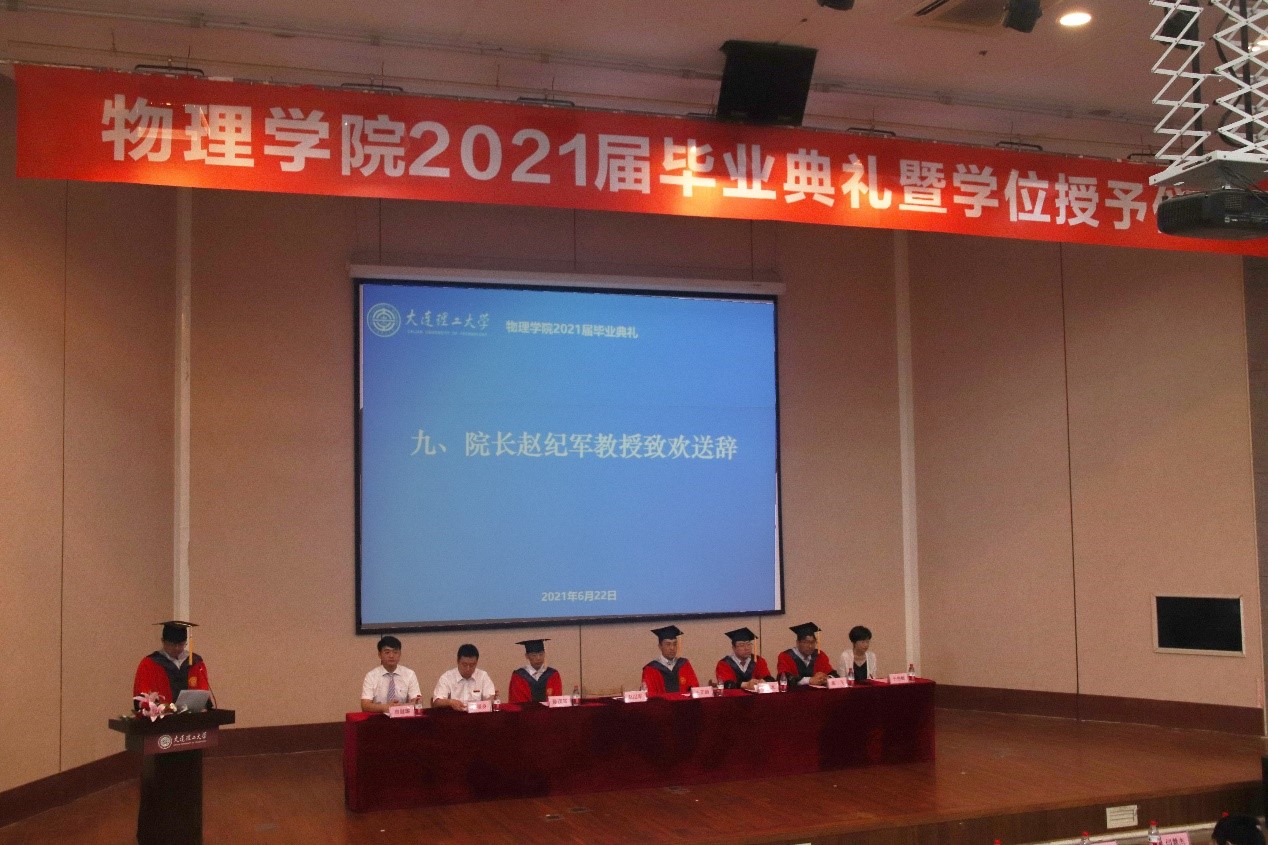 仲夏时节,万类竞秀,这是大工物理人收获的季节,也是告别的季节。在这感慨万千的时刻,新葡的京集团350vip8888首页院长赵纪军教授向2021届毕业生表示最衷心的祝贺与最真诚的祝福,以及对辛勤培育学生的老师们的表示感谢。赵院长对过去五年间新葡的京集团350vip8888首页取得的优越成绩进行总结,并肯定和赞赏新葡的京集团350vip8888首页地红色基因和同学们的优良学风,深信大工物理的烙印将使同学们成为时代的建设者、开拓者、领跑者。