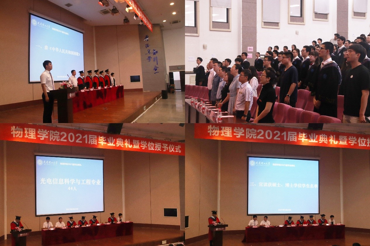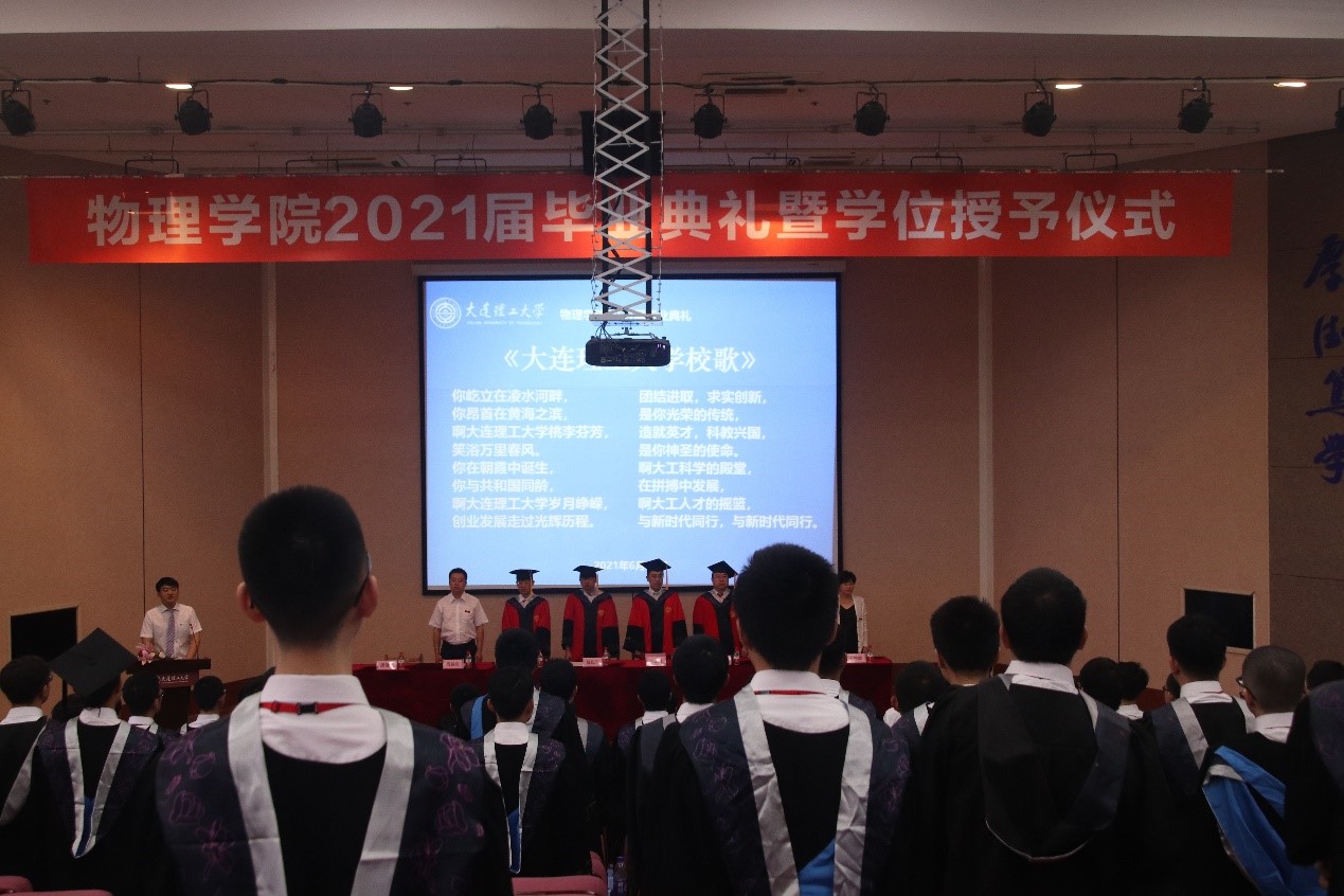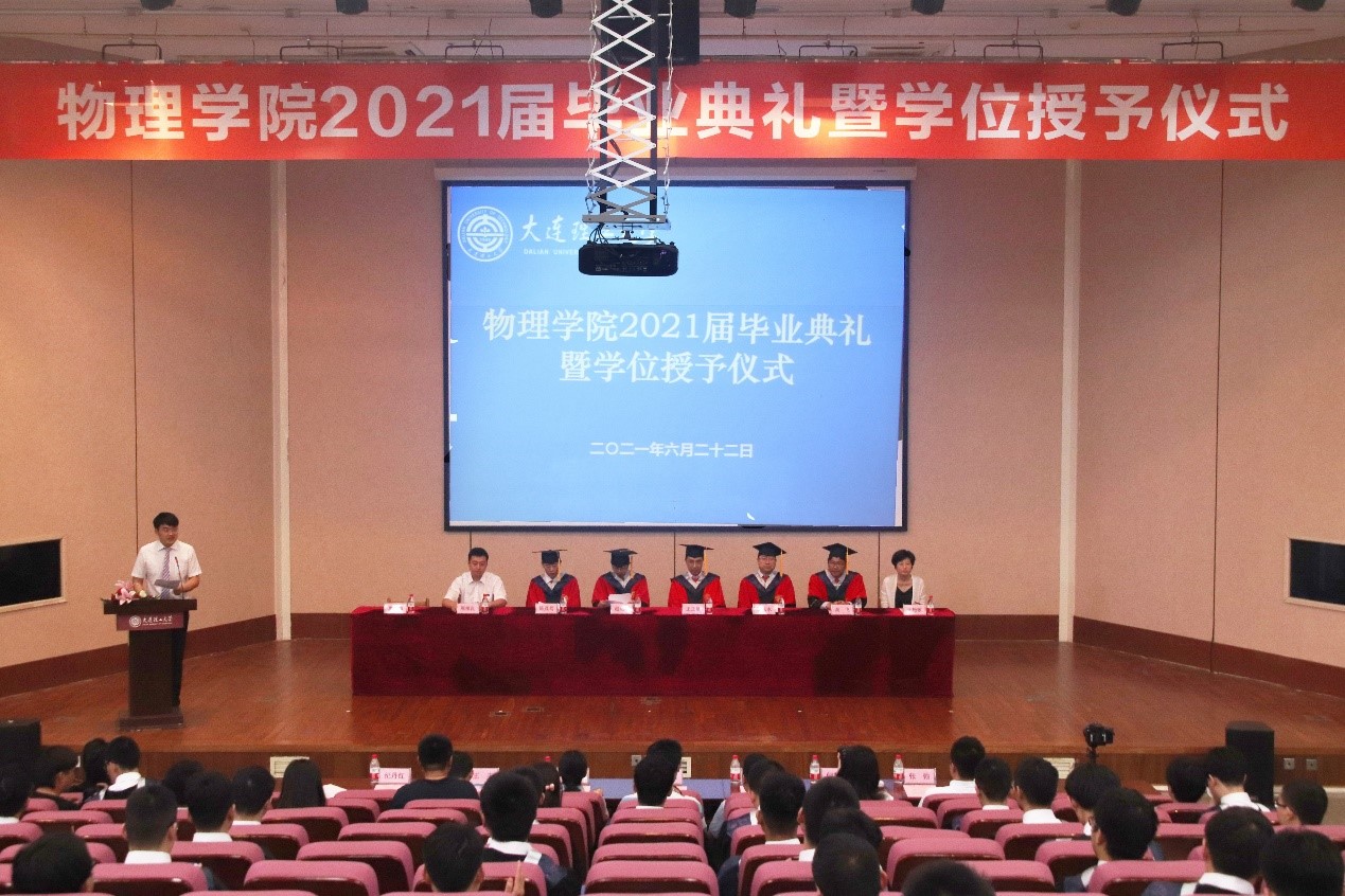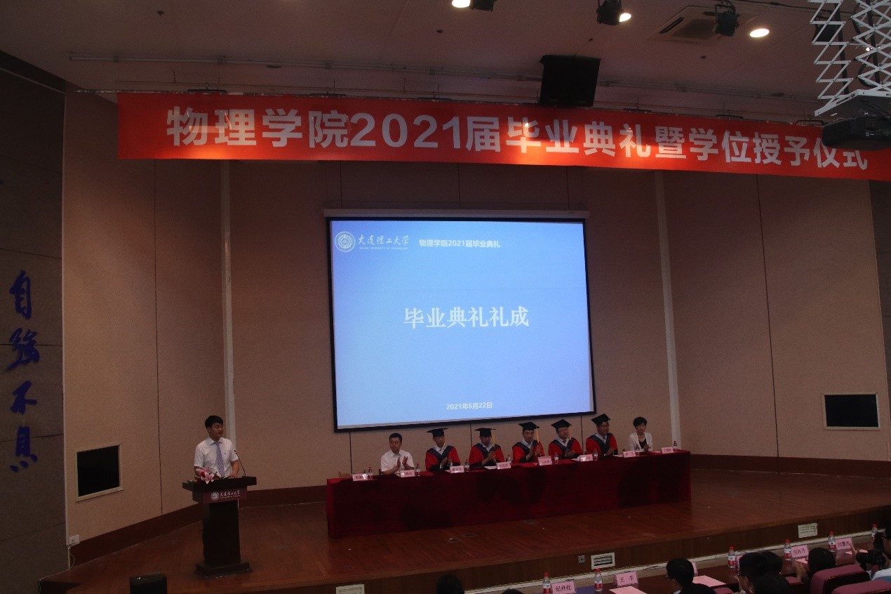 夏季逾至,又逢毕业季。新葡的京集团350vip8888首页2021届毕业生即将离开大工,开启新的旅程。2021年6月22日上午9时,新葡的京集团350vip8888首页2021届毕业典礼暨学位授予仪式在研教楼报告厅成功举行。出席的嘉宾有新葡的京集团350vip8888首页院长赵纪军教授、党委书记王正汹教授、副院长陈茂笃教授、副院长于长水教授、副院长高飞教授、党委副书记兼副院长周福良老师、党委副书记兼副院长于艳敏老师、学生工作办公室主任纪丹红老师、研究生辅导员张弛老师。此外,本次典礼也面向本科生思政班主任、专业班主任发出邀请。物1703班思政班主任赫铭老师、物1701班思政班主任邬霞老师、物大珩1701班思政班主任应兆升老师、物1702班专业班主任副教授王丰老师、物1703班专业班主任闫慧杰老师参与本次新葡的京集团350vip8888首页的毕业典礼。2021届本科毕业生辅导员唐健璐老师担任主持人。