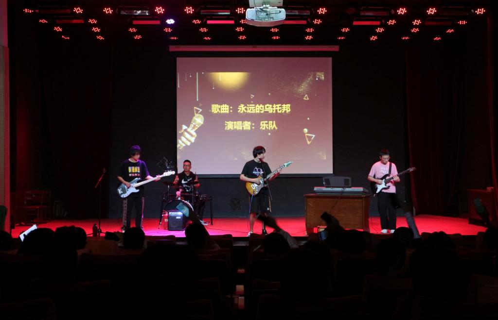 之后21级新生马晴、白峻松、孙明扬带来的《小情歌》更是尽展21级新生的多才多艺,其中马晴同学的电钢琴弹奏、白峻松同学的吉他弹奏使乐曲层次丰富,赚尽眼球;文化部共同精心筹备的《一封家书》向新生家长征稿,由学长学姐慢慢叙来,寄托着家长与学长学姐对新生同学的殷切期盼与美好祝福;王瑛琦、邵晶晶、邢静文共同向大家演唱的歌曲串烧《大梦想家们,我们仨把我们唱给你听》将三首歌融为一体表达了对21级新生的美好祝愿,文化部部长与全体副部演唱的《NEW BOY》歌曲积极向上,赢得了在场观众的阵阵掌声。最后,晚会在陈万年辅导员倾情演唱的《年少有为》歌曲中落下帷幕。